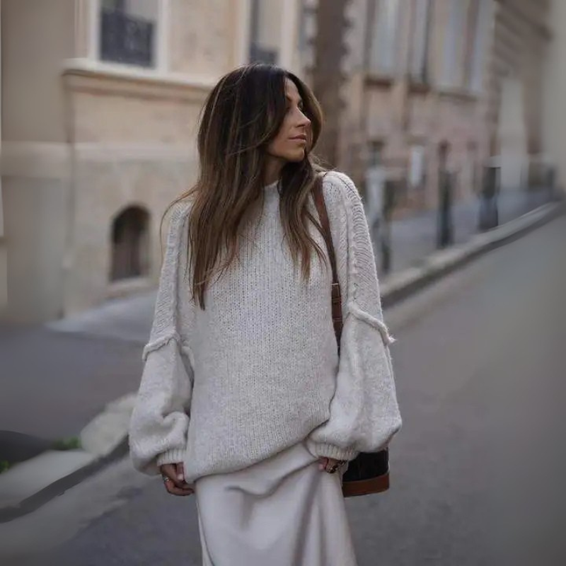 Damen Oversized Strickpullover mit Zopfmuster – Rundhalsausschnitt