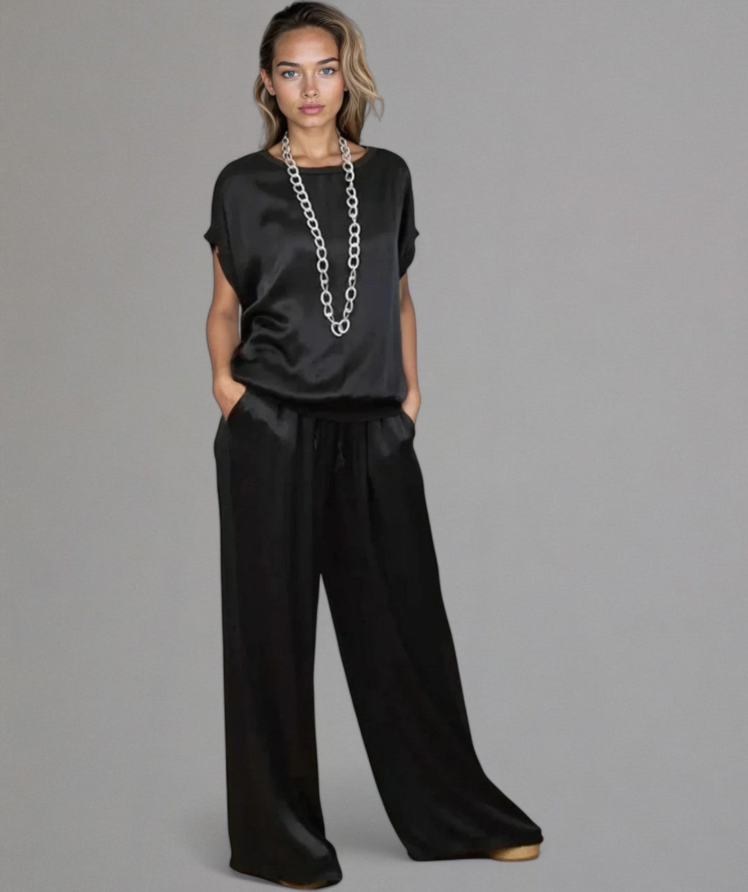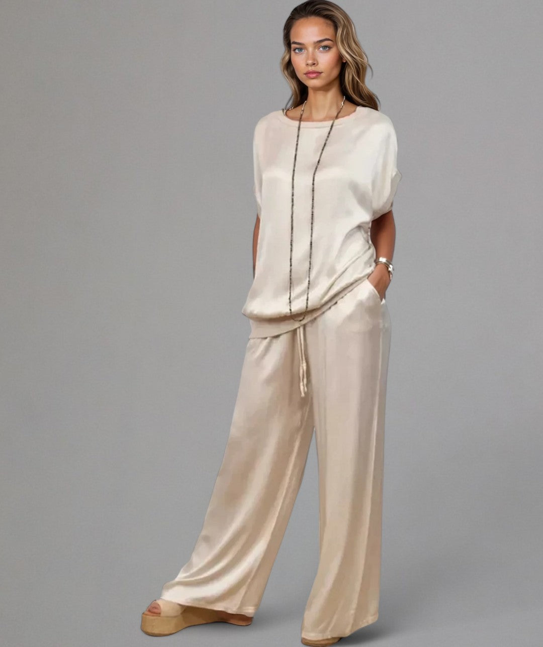 Ein elegantes Set, das Komfort und Stil perfekt vereint. Der luftige Stoff und die lockere Passform sorgen für einen entspannten, schicken Look – ideal für zu Hause und unterwegs. Strapazierfähig, vielseitig und wunderbar zu tragen.